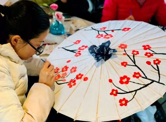 为庆祝第96个“三八妇女节”,3月7日,集团妇委会在上下杭举办“翰墨飘香,伞韵悠旋”庆“三八”节油纸伞手作体验会。集团本部及所属企业女职工代表共50余人参加。