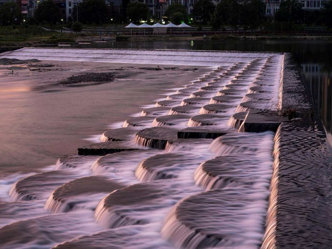 绿水工程1#坝是松溪水美城市PPP项目完工的首个节点工程,属壅水坝,坝后形成绿水漪链的湖面,坝前则是独具特色的鱼鳞叠水景观,成为湛卢明月下水美松溪的一道印记。